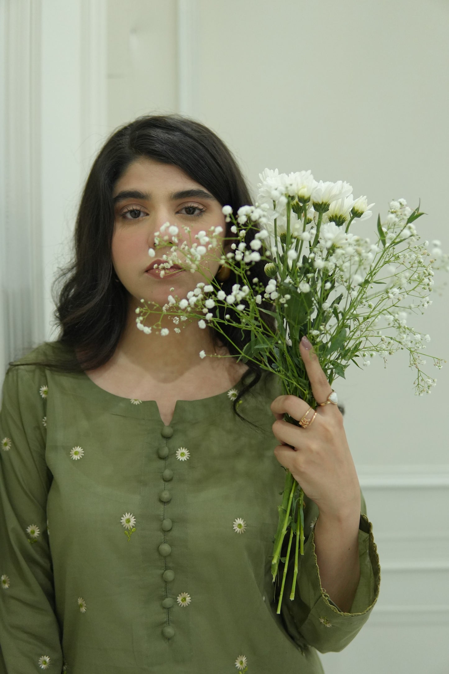 This sophisticated outfit includes a lawn shirt with intricate embroidery on the front, back, and sleeves, paired with a cotton lawn trouser, offering a refined and cohesive appearance.