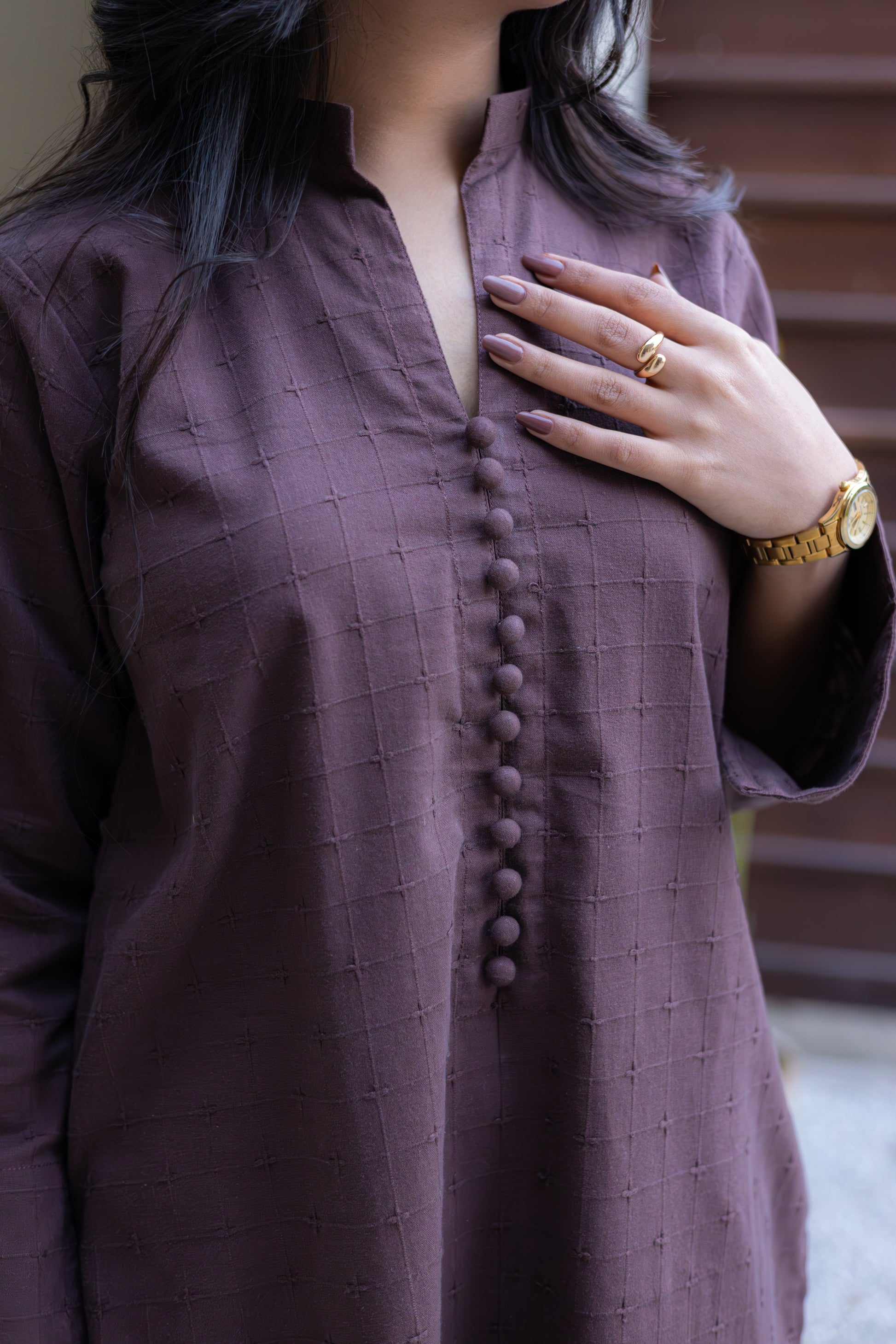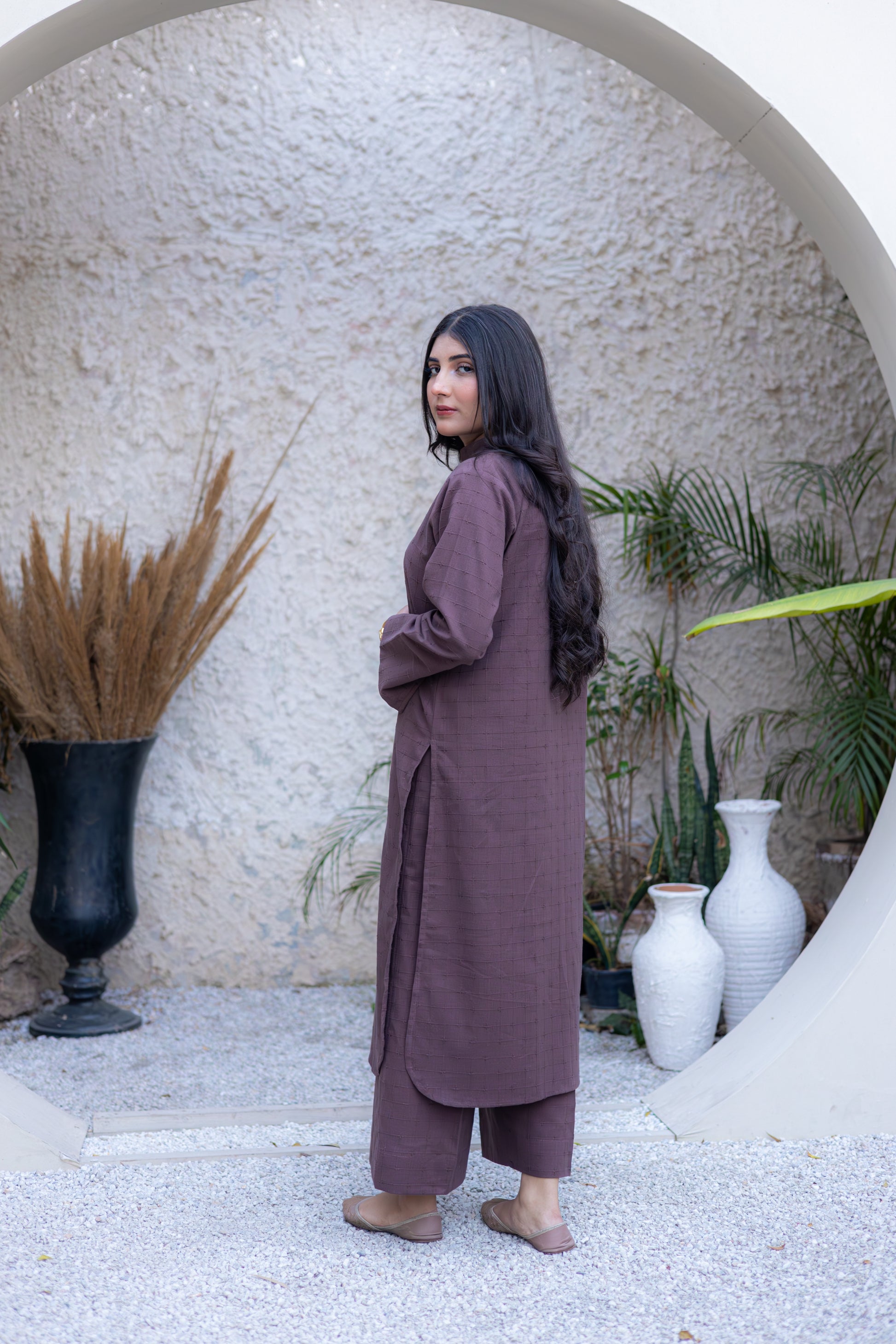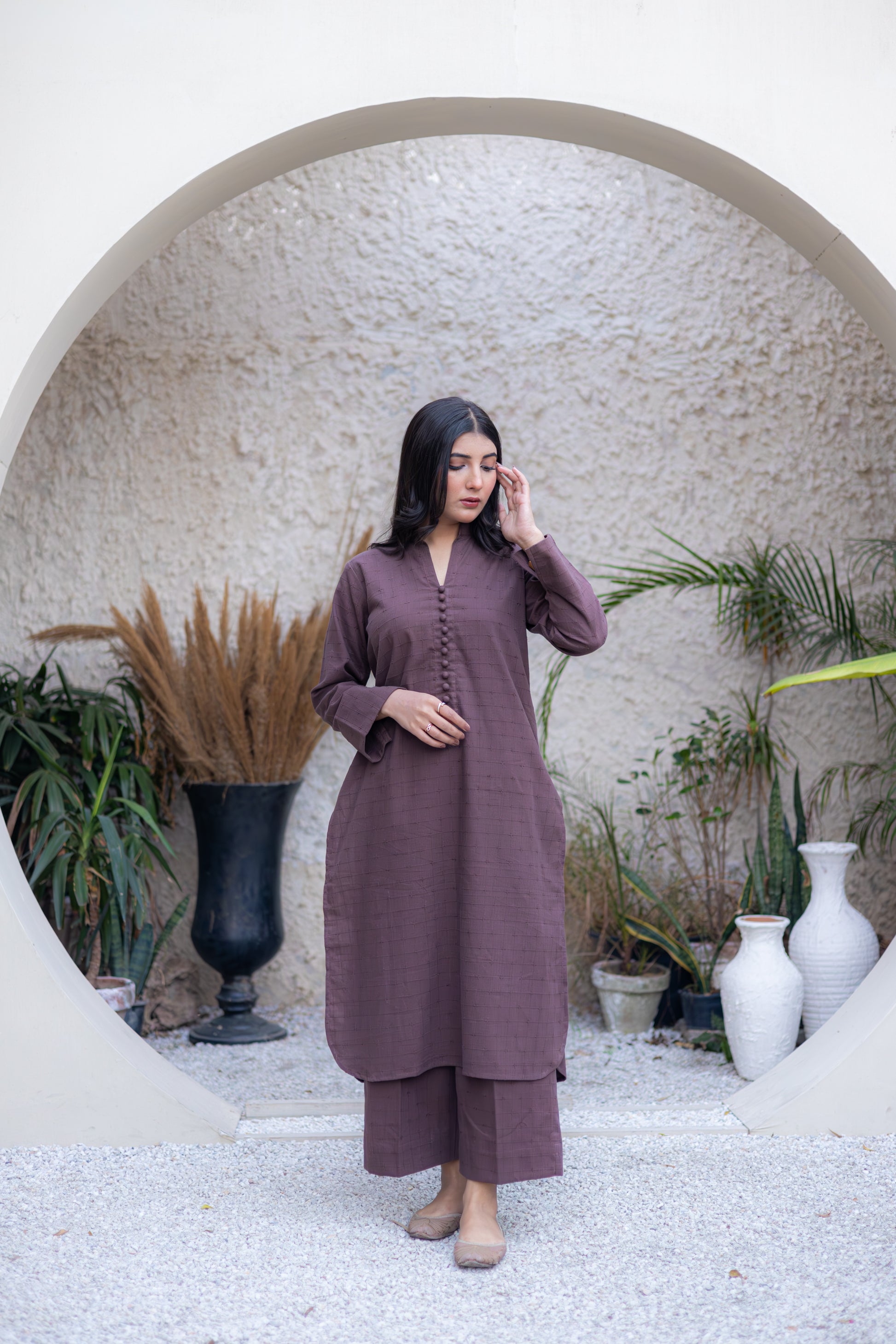 Wrap yourself in the softness and sophistication of this fully embroidered shirt featuring a ban with button neckline, complemented by embroidered trousers that brings timeless elegance to your wardrobe.