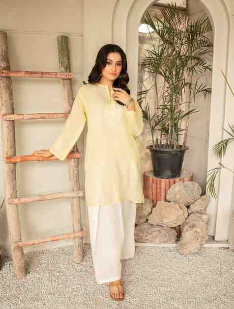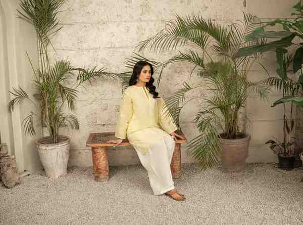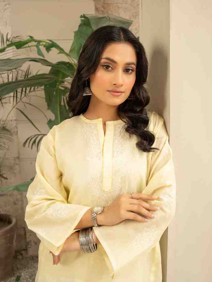 The hand embroidered shirt features delicate embellishments paired with a traditional shalwar for a statement look, making it perfect for traditional gatherings.